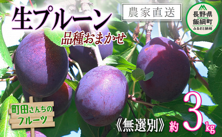 長野県飯綱町 プルーン 家庭用 3kg (2kg箱詰め) 無選別 沖縄県への配送不可 2023年8月上旬頃から9月上旬頃まで順次発送予定 町田さんちのフルーツ 長野県 飯綱町 [0419] 10,000円 出典:ふるなび