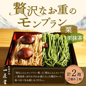 岐阜県中津川市 【人気につき最大3か月待ち】 人気カフェISSADO 「お重の栗きんとんモンブラン~栗、栗抹茶食べ比べセット~」 計2箱 16020 16,000円 出典:ふるなび