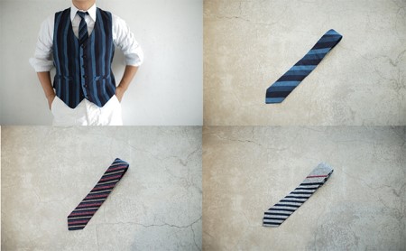 静岡県浜松市 NIPPON KIMONO FABRICS「遠州綿紬」ネクタイ 3.紺赤ライン 40,000円 出典:ふるなび
