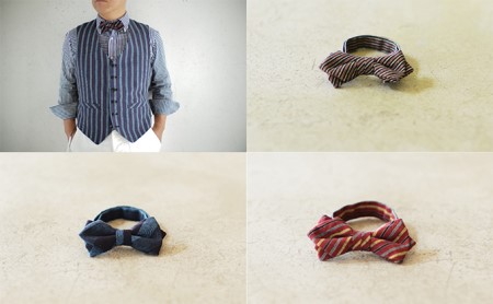 静岡県浜松市 NIPPON KIMONO FABRICS「遠州綿紬」蝶ネクタイ 2.紺赤の細ライン 40,000円 出典:ふるなび