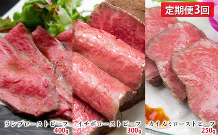静岡県菊川市 定期便3回 黒毛和牛ローストビーフ 食べ比べ(ランプ・イチボ・カイノミ)【配送不可:離島】 113,000円 出典:ふるなび