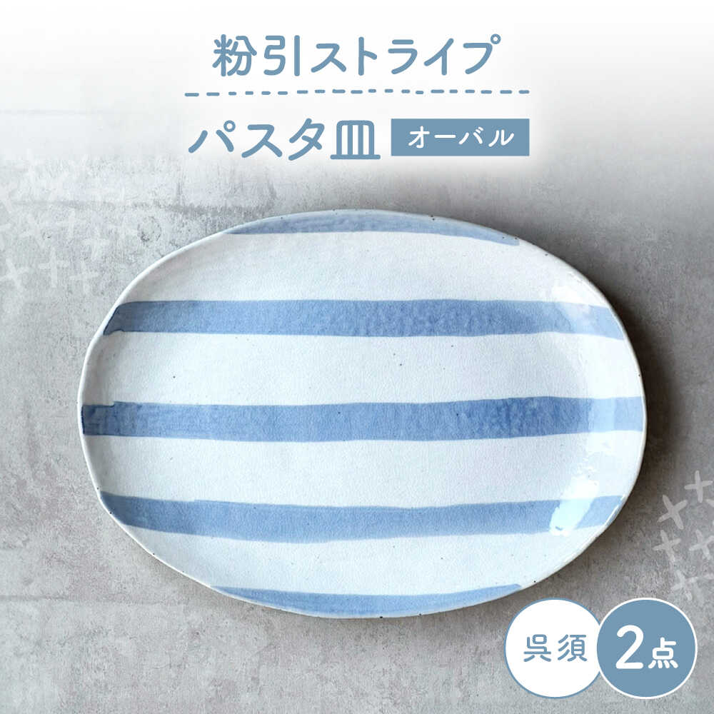 【瀬戸焼】 オーバルパスタ皿 粉引ストライプ呉須 2枚 【カネ三商店】 / 食器 皿 楕円皿 プレート ギフト / 瀬戸市[BBDD090]