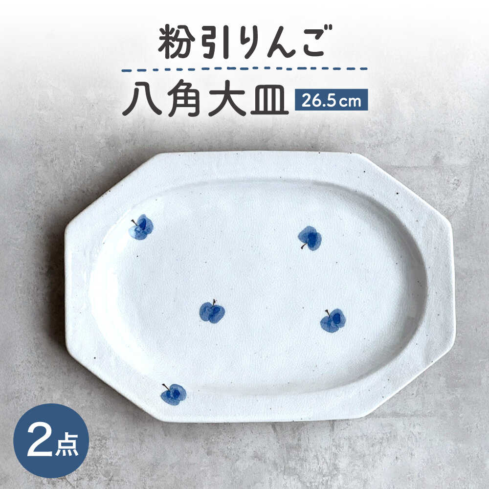 【瀬戸焼】 26.5cm プレート 八角大皿 粉引りんご 2枚 【カネ三商店】 / 食器 皿 プレート ギフト / 瀬戸市[BBDD092]