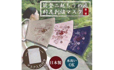 大阪府堺市 匠 能登二越粋花刺繍ちりめんマスク ネイビー 10,000円 出典:ふるなび
