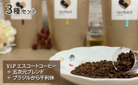 大阪府堺市 ハートビートビーンズ レギュラーコーヒーセット V.I.P エスコートコーヒー + 五次元ブレンド + ブラジルから千利休+かんたんドリップフィルター 中細挽き粉 25,000円 出典:ふるなび