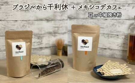 大阪府堺市 ハートビートビーンズ レギュラーコーヒーセット ブラジルから千利休 +メキシコデカフェ + かんたんドリップフィルター 中細挽き粉 10,000円 出典:ふるなび