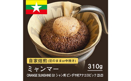 大阪府堺市 自家焙煎コーヒー!310g ミャンマー ORANGE SUNSHINEG1 シャン州 ピンダヤ村 珈琲 豆 5,000円 出典:ふるなび