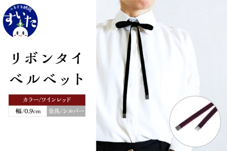 大阪府吹田市 リボンタイ ベルベット 0.9㎝幅【ワインレッド/金具シルバー】 8,000円 出典:ふるなび