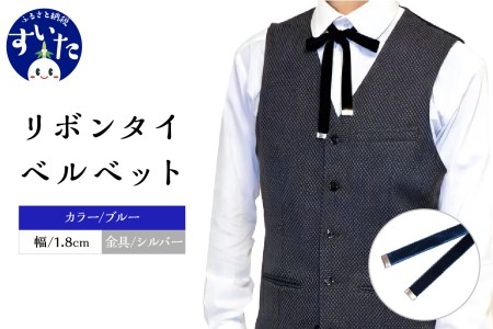 大阪府吹田市 リボンタイ ベルベット 1.8cm幅【ブルー/金具シルバー】 8,000円 出典:ふるなび