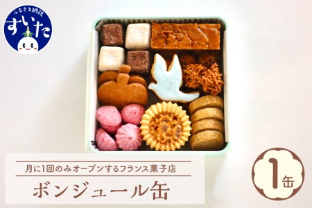 大阪府吹田市 月に1回のみオープンする「ボンジュール主人公」の焼き菓子!ボンジュール缶 11,000円 出典:ふるなび