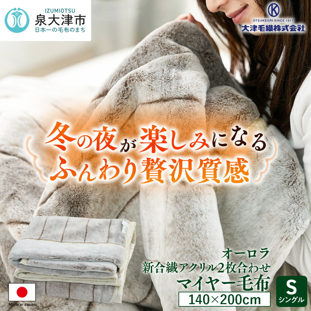 日本製 オーロラ 新合繊アクリル2枚合わせマイヤー毛布 シングル ブラウン 1枚 N-M-9911