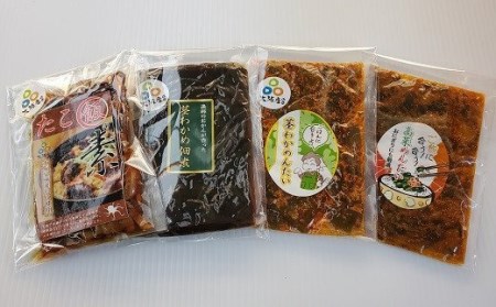 大阪府阪南市 惣菜4点セット(1)【たこも(たこ飯の素)・茎わかめ佃煮・高菜めんたい・茎わかめんたい 各1袋】_NA75 9,000円 出典:ふるなび