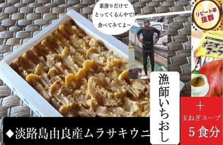 兵庫県洲本市 AU79◇ミシュランガイド掲載店も使用!淡路島由良漁港直送だからお届け出来る本物の由良ウニ(50g×1枚)+玉ねぎスープ付き 6,000円 出典:ふるなび