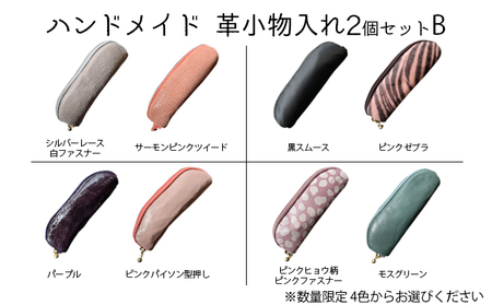 兵庫県赤穂市 ハンドメイド 革小物入れ2個セットA ※数量限定/小銭入 印鑑入 シルバーピンクF、ピンク 12,000円 出典:ふるなび