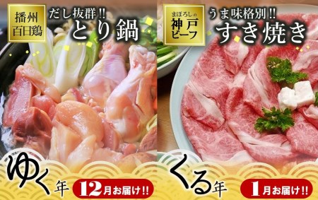 兵庫県西脇市 【12月20日まで申込み限定】12月とり鍋/1月すき焼き ~ゆく年くる年・鶏牛セット~ (50-28) 50,000円 出典:ふるなび