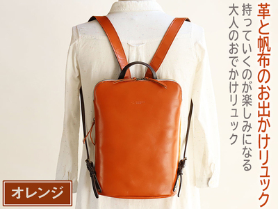 奈良県橿原市 革と帆布のお出かけリュック【オレンジ】 ※着日指定不可 63,000円 出典:ふるなび
