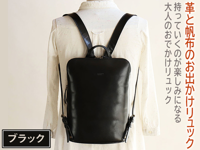 奈良県橿原市 革と帆布のお出かけリュック【ブラック】 ※着日指定不可 63,000円 出典:ふるなび