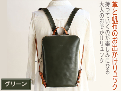 奈良県橿原市 革と帆布のお出かけリュック【グリーン】 ※着日指定不可 63,000円 出典:ふるなび