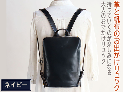 奈良県橿原市 革と帆布のお出かけリュック【ネイビー】 ※着日指定不可 63,000円 出典:ふるなび