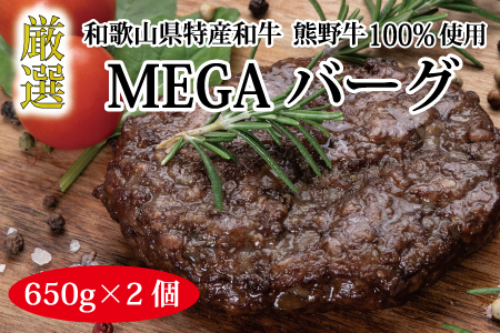 和歌山県串本町 特選黒毛和牛 熊野牛 巨大ハンバーグ!MEGAバーグハーフ 650g×2個【mtf201】 13,000円 出典:ふるなび