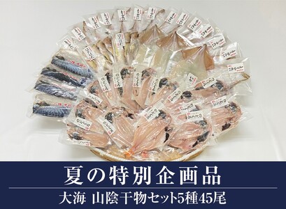 鳥取県南部町 <夏の特別企画品>山陰干物セット5種45尾(大山ブランド会) エテカレイ、開きのどぐろ、塩サバフィーレ、スルメイカ、ハタハタ 40,000円 出典:ふるなび