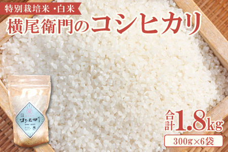 島根県益田市 A-875 【使い切りサイズ】横尾衛門のコシヒカリ 白米2合(300g)×6袋 8,000円 出典:ふるなび