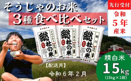 岡山県総社市 【令和5年産米】3種食べ比べセット【精白米】15kg岡山県総社市産〔令和6年2月配送〕 23-013-024 13,000円 出典:ふるなび