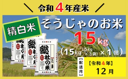 岡山県総社市 22-013-002.【令和4年産】そうじゃのお米【精白米】15kg〔令和4年12月配送〕 13,000円 出典:ふるなび