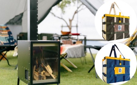香川県丸亀市 持ち運べる焚き火ギア TAKI BE CAN オリジナルキャリングバッグセット 本体:ベージュ バッグ:カーキ 355,000円 出典:ふるなび