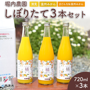 愛媛県西予市 堀内農園直送みかんジュース〝まどんなと温州みかんの混合・清見・温州みかん”しぼりたて3本セット 9,000円 出典:ふるなび