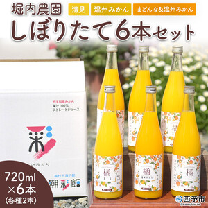 愛媛県西予市 堀内農園直送みかんジュース〝まどんなと温州みかんの混合・清見・温州みかん”しぼりたて6本セット 16,000円 出典:ふるなび