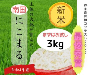 高知県南国市 令和4年産 南国高知 にこまる 新米 3kg【北海道・沖縄県・離島配送不可】 8,000円 出典:ふるなび