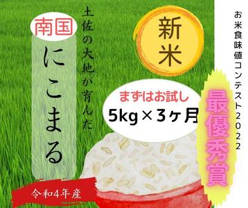 高知県南国市 令和4年産 南国高知 にこまる 新米 5kg×3ヶ月 定期便【北海道・沖縄県・離島配送不可】 39,000円 出典:ふるなび