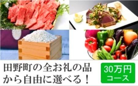 高知県田野町 【四国一小さなまち】 ★!年末限定!★ 返礼品は後からゆっくり選べる寄附コース【C】(2022年版) 300,000円 出典:ふるなび