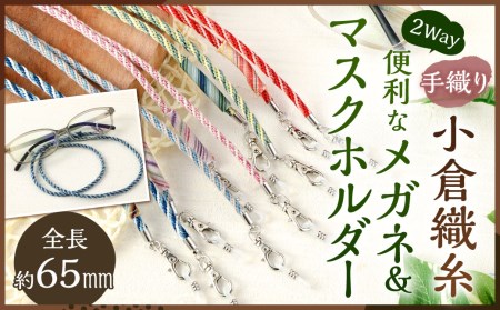 福岡県北九州市 手織り 小倉織糸ー 便利な 2Way メガネ & マスク ホルダー 全長約65cm ピンク系 22,000円 出典:ふるなび