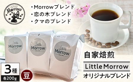 福岡県筑後市 自家焙煎 珈琲 Little Morrow オリジナルブレンド(200g×3種)【豆】【1239514】 10,000円 出典:ふるなび
