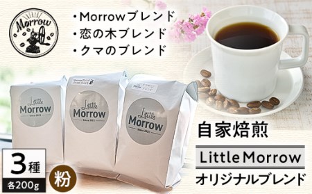 福岡県筑後市 自家焙煎 珈琲 Little Morrow オリジナルブレンド(200g×3種)【粉】【1239515】 10,000円 出典:ふるなび