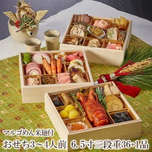 福岡県中間市 おせち3~4人前 6.5寸三段重36+1品マルゴめん米麺付【001-0102】 55,000円 出典:ふるなび