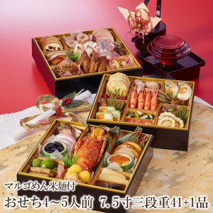 福岡県中間市 おせち4~5人前 7.5寸三段重41+1品マルゴめん米麺付【001-0103】 70,000円 出典:ふるなび