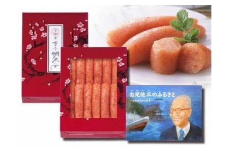 福岡県宗像市 無着色辛子明太子600g切大(海賊と呼ばれた男「出光佐三」のふるさと豆本付き)_PA0021 13,000円 出典:ふるなび