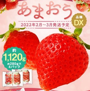 福岡県古賀市 【2022年2月~3月順次発送予定】 あまおう 合計約1,120g 約280g×4パック DX 14,000円 出典:ふるなび