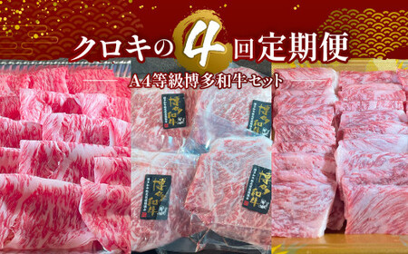 E20 【4回定期便】クロキの4回定期便 (A4等級博多和牛セット) A4等級 博多和牛 セット 和牛 牛 肉 すき焼き しゃぶしゃぶ ステーキ 焼肉