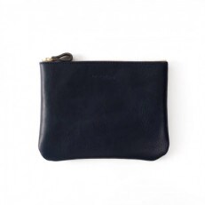 【革製品】マチなしのファスナーポーチ M size(色・ネイビー)