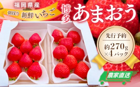 福岡県宇美町 農家直送 博多あまおう 約270g×4パック 福岡県産 先行予約 2023年11月より順次発送 NY001 14,000円 出典:ふるなび