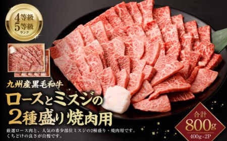 福岡県遠賀町 九州産 黒毛和牛 ロースとミスジの2種盛り 焼肉用 計800g (各400g×2P) 26,500円 出典:ふるなび