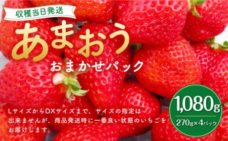福岡県遠賀町 【2023年1月上旬より順次発送】あまおう おまかせパック【収穫当日発送・限定栽培】1,080g(270g×4パック)いちご 11,000円 出典:ふるなび