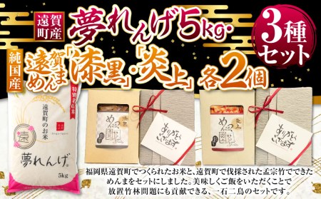 福岡県遠賀町 【令和4年度産】遠賀町産 夢れんげ 5kg・純国産遠賀 めんま「炎上」 4個 セット 米 17,500円 出典:ふるなび