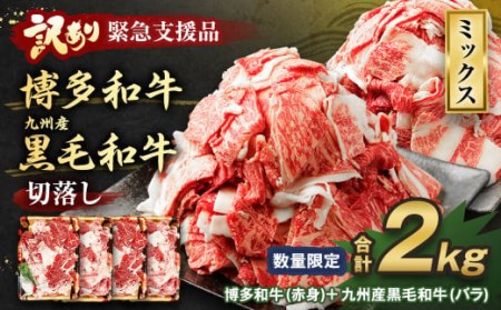 福岡県遠賀町 【2023年1月発送】【訳あり】博多和牛・九州産 黒毛和牛 切落し ミックス 500g×4パック 計2kg 18,500円 出典:ふるなび