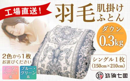 福岡県広川町 工場直送 国産羽毛肌掛けふとん「筑後七国」ホワイトダックダウン 85%使用 ブルー・グリーン 22,000円 出典:ふるなび