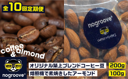福岡県築上町 定期100-09 【スペシャルティ豆使用】オリジナル築上ブレンドコーヒー豆(焙煎機で素焼きしたアーモンド付) 定期便 (全10回) 100,000円 出典:ふるなび